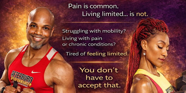 KATY, TX LOCALE At Afterburn Performance+ (ABPfit.com), our PT60 sessions are the ultimate tailored fitness experience. We specialize in everything from mobility and stabilization to dynamic, high-intensity training. Whether you're a beginner or a world-class athlete, our 60-minute 1-on-1 sessions are designed to enhance your performance on the field and in daily life. Expect low-impact techniques where needed, ramping up to intense, game-changing movements as you progress. Every session is crafted to help you conquer your goals and celebrate the journey. Staying consistent means you’re not just a client here—you’re becoming your own hero, ready for any challenge! Includes basic meal planning & Nutritional Coaching. Dave Thompson, CPT, CNC Gabrielle Price-Thompson, CPT, LMMT By selecting and purchasing this plan, you agree to the chosen payment schedule for the term of the Subscription. Payments are auto-charged based on your selected frequency.